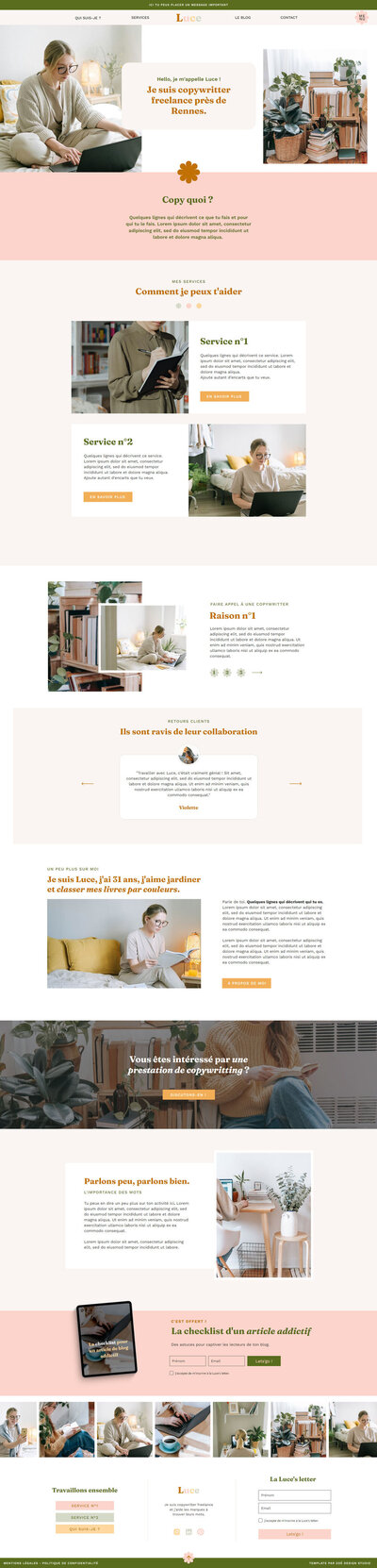 J'ai acheté le template "Luce" créé par Zoé afin de réaliser mon site Internet. Moi qui n'y connaissais rien, j'ai pu facilement élaborer et personnaliser mon site pour présenter mes services, sans avoir à coder.
