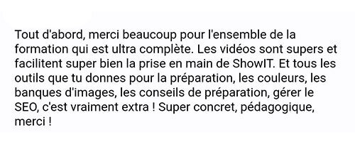 Nous avons une formation complète : elle couvre non seulement le fonctionnement d'un site web, mais aussi le référencement, ainsi que la personnalisation du modèle.